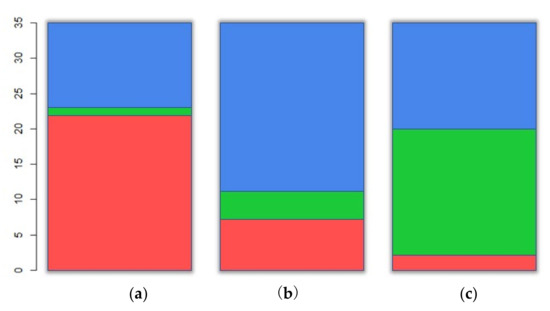 Result of the clustering analysis for scenario 8 in number of stations of each cluster: (a) rural; (b) suburban; (c) urban.