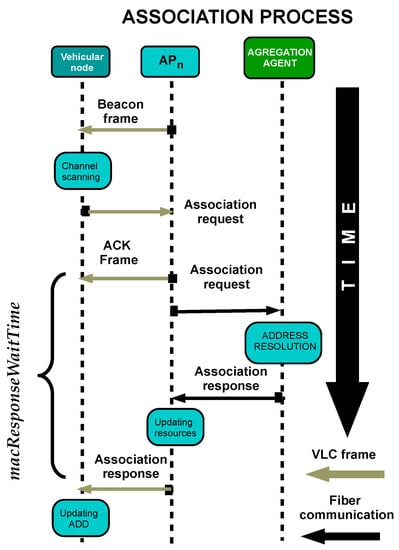 VLC technology is still in the early stages of development, in consequence, there are some problems in the superior layers that have not been deeply studied yet. One of the less-studied topics is the mobility process when a user changes from one AP to another. The main drawback of this procedure is the time spent during the association process to initialize a new session. If the vehicular node requires to move across many cells, the continuous cell exchange will limit the communication. Without a mobility scheme, a user’s node has to accomplish some processes to recover service each time it enters a new network. First, it needs to detect the link failure which presents a compromise between sensibility and reliability. If the criteria are too sensitive, the user can disconnect needlessly with a ping-pong effect. On the other hand, resistant detection can hold the node without service for a long time. The second step is scanning the channel looking for a new AP with appropriate connection conditions. When the user’s node has decided on the target AP, it executes an entering protocol. Unfortunately, these actions take a long time and disable the link communication for some seconds.