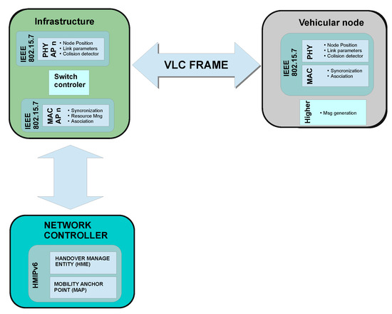 The remainder of this paper is structured as follows. Section 2 presents the comprehensive details of the handover process and an overview of the related works applied to V2I links. A summary of the IEEE 802.15.7 MAC and PHY layers is discussed in Section 3, which provides a framework for our work. Section 4 introduces the proposed system design, it first describes the network topology changes to fasten the handover resolution, and then it explains the proposed handover strategy for this problem. Section 5 describes the evaluation methodology, and Section 6 discusses the obtained results. Finally, we draw the conclusions and future work in Section 7.