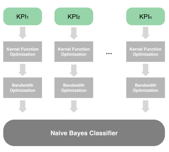 where is the classification set. After kernel function optimization and bandwidth optimization, the probability density distribution function corresponding to each group of KPIs is used in the classifier.