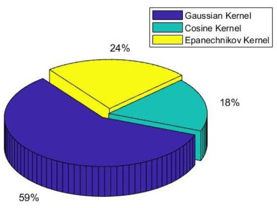 At the same time, we explored the selection of the kernel function in the two-step optimization. Figure 7 shows the kernel density estimation results of the four kernel functions for different KPI data. From Figure 8, it can be seen that the Gaussian kernel function was the most selected one when performing adaptive kernel density estimation for all KPI data.