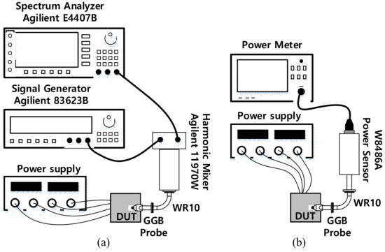 - Trinh, V.; Park, J. A 16.3 dBm 14.1% PAE 28-dB gain W-Band power amplifier with inductive feedback in 65-nm CMOS. IEEE Microw. Wirel. Compon. Lett. 2020, 30, 193–196. [Google Scholar] [CrossRef]