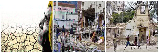The categorical representation of those concepts (i.e., emotions, sentiments) can be different, although the visual cues representing them are closely related. For instance, emotion recognition, opinion mining, and sentiment analysis are generally expressed by three main classes: happy, sad, and neutral or, similarly, positive, negative, and neutral [12]. However, similar types of visual features are used to infer those states [13]. For instance, facial expressions have been widely explored for both emotion recognition and visual sentiment analysis in close-up images [4,14]; though it would be simplistic to limit the capability of recognizing emotions and sentiments in close-up facial images. There are several application domains where more complex images need to be analyzed. This is exactly the case of the aforementioned scenario of disaster-related images, in which the background information is often crucial to evoke someone’s emotions and sentiments. Figure 1 provides samples of disaster-related images, highlighting the diversity in terms of content that needs to be examined. In addition, it is also important to mention that emotions and feelings can be different from subject to subject and based on experience.