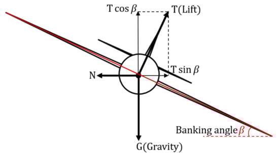 In which, the vertical force is assumed to be the weight of the aircraft. By dividing Equation (1) by Equation (2), we obtain: