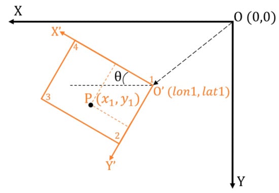 Coordination transformation from GPS coordinates frame to local frame; in which, the x axis and the y axis of the local frame are defined leftward and downward, respectively.
