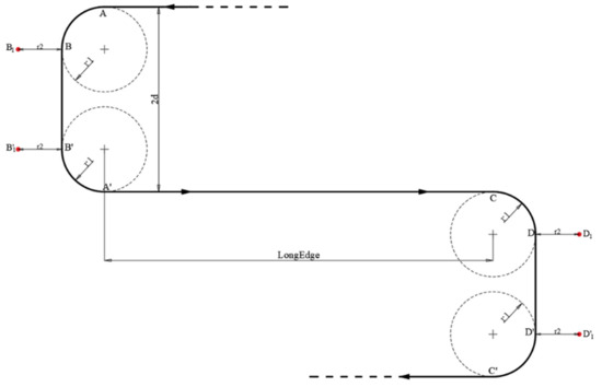 Therefore, for each iteration, there were both LSL and RSR Dubins paths and 8 waypoints in total in the proposed method (shown in Figure 10, A→B→B’→A’→C→D→D’→C’).