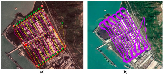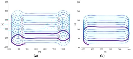 Bird’s eye view of the final trajectory result of cycle-Boustrophedon path in simulation platform 1 (a) and platform 2 (b).