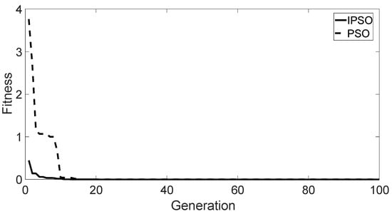 2. The standard PSO algorithm uses the parameter to decrease the phase length, which is determined by seeking linearly and gradually to converge the iterations to the extreme value point []. The drawback of this method is that the arithmetic pair is likely to collapse into the local optimum. To address these drawbacks, the parameter decrease as an S-shaped function and changes dynamically. The parameter is set to be a large value at the beginning of the optimization process to facilitate the global search and becomes smaller at the end of the search process to facilitate the local convergence. The representation of the weights in the IPSO algorithm is as follows: