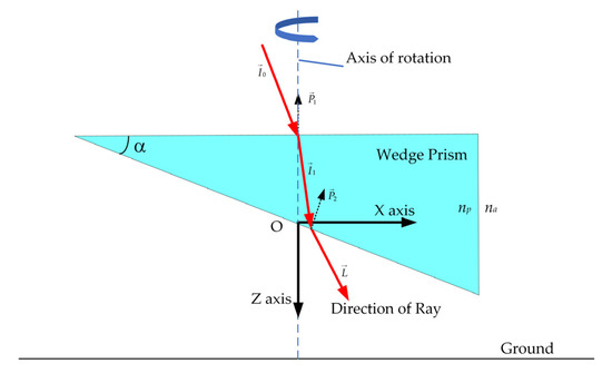 However, the normal vector of the upper face and the lower face of the wedge prism will be changed during the rotation of the scanner. Because the scanner rotates the prism about its