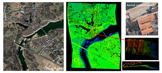 Figure 5b. The INS includes a global navigation satellite system (GNSS) and an inertial measurement unit (IMU). The high accuracy position and the attitude of the multispectral lidar are provided by the INS. It also offers triggering via a pulse generator with a pulse-per-second (PPS) signal, which synchronizes the MWOL and GML sensors. The MWOL was designed to work in linear mode and is mainly applied to intertidal zone surveying and bathymetric mapping. The MWOL’s solid-state laser was developed to generate pulse lasers with wavelengths of 1064 nm, 532 nm, 486 nm, and 355 nm. The target intensity of different wavelengths can be obtained for point cloud classification and other applications. In addition, a palmer scanner was utilized in MWOL with a scanning FOV of 30°, and the nominal AGL range was 0.3 km to 0.5 km. As a combination, the GML operating at a wavelength of 1545 nm was designed to acquire a high-density lidar image to compensate for the MWOL’s low-density point cloud.