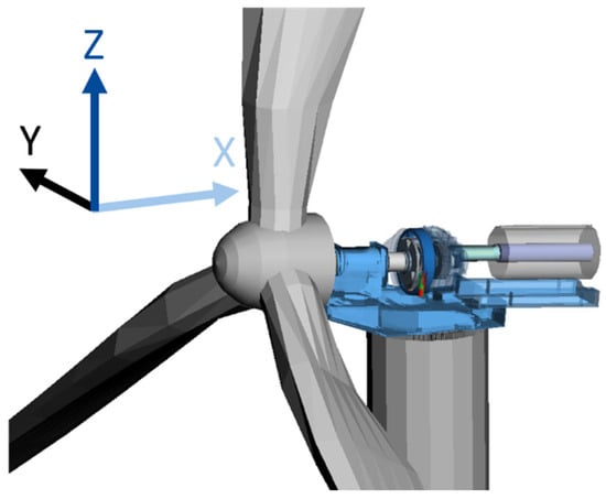 Illustration of the orientation of the x, y, and z axes of measurement with respect to the WT drivetrain.