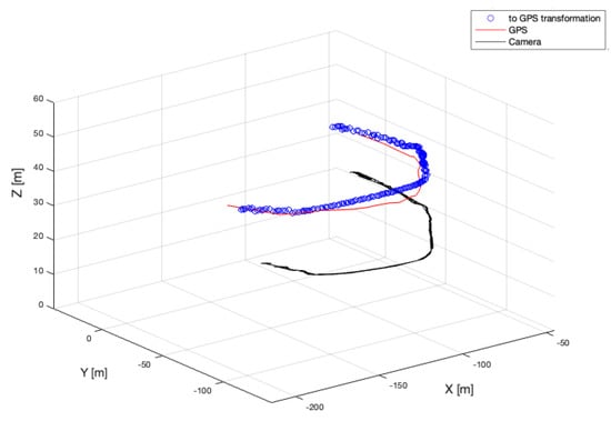 In the last stage, we have used a bird-like drone equipped with the GPS sensor designed to perform a circular flight around the system, see [3]. The aim of the experiment was to obtain ground-truth data from the GPS sensor. It was necessary to transfer the data to a common coordinate system by adding a constant offset, see Figure 14.