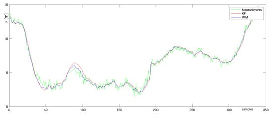 It is important to notice that in our numerical experiments we have been using IMM as a solution for unknown standard deviation of the process noise. Two structurally identical motion models have been defined. The only difference resided in predefined values of the models’ process noise standard deviations. The particular values of the standard deviations have been defined empirically after numerical experiments conducted prior to those described herein.