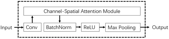 As shown in Figure 7, the CSAC-Cell consists of one Conv2D layer with input channel size , output channel size , and kernel size , one Channel-Spatial Attention Module (CSAM), BatchNorm, ReLU, and Maxpool2D with kernel size, and padding .