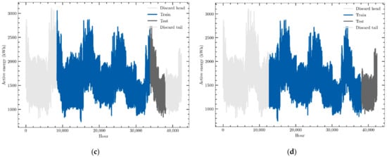The first 5000 data points of reactive energy consumption were not recorded although they were provided by the measurement system, while data of weather variables started to be measured and recorded on 10 July 2019. These facts suggest analyzing two different case studies to forecast hourly consumption: a univariate prediction scenario that takes into account only the whole dataset of active energy consumption and another multivariate one that uses the four time series, but whose data ranges from 10 July 2019 to the end of the series.