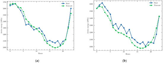 The predictions obtained for two different days with the CEEMD–LSTM structure are shown in Figure 7 as examples of the high accuracy achieved.