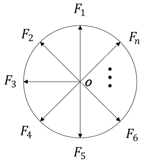 Further analysis shows that each non-main diagonal element in the determinant can be regarded as the sum of vectors. Since the modulus values of the vectors are the same, the vectors can be equally divided on a circle, as shown in Figure 1.