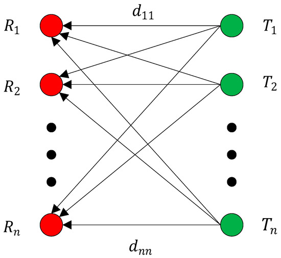 In Figure 2, the red graph indicates the receiving antenna, the green one indicates the transmitting antenna. is the -th receiving antenna, is the -th transmitting antenna, and is the sub-channel propagation path.