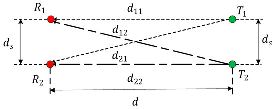 In summary, Equation (35) is a general expression for 2 × 2 LoS MIMO systems in the rectangular array, which corresponds to the parameters setting in [43].
