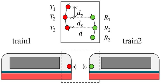 Table 3 and Table 4 provide the signal frequency, antenna element spacing, and transceiver antenna distance parameters. According to antenna configurations proposed in this paper, the 2 × 2 antenna array is more suitable for the communication of coupling trains, while the 3 × 3 antenna array is more suitable for virtual coupling trains. In addition, as the signal frequency increases, the antenna array element spacing must decrease, making it more ideal for short-range communication.