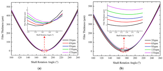 This section derived bearing film-thickness data using the film-thickness identification model. The film-thickness distribution and lubrication state law of WSB under various operating conditions are analyzed in depth.