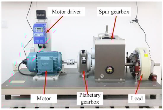 In order to study the matching between the signal and the optimal perceptive field model, the experiments of different faults of parallel gearbox were carried out in the dynamic engineering laboratory of North China Electric Power University (NCEPU) (Baoding, China). The experimental platform completely simulates the transmission system of a wind turbine shaft system which is driven by a motor and different loads are simulated by a magnetic particle brake. The input of the motor finally reaches the output shaft through the planetary gear and two-stage parallel shaft gear and the load acts on the output shaft. The acquisition system uses sensors arranged in different positions to collect vibration data and transmit it to the host computer for analysis. The vibration data of parallel gears of the gear power transmission failure simulation bench were selected for analysis. The parallel gears used in the platform included the faults of normal, gear wear and tear, crack, broken teeth, and tooth deficiency. The experimental platform and fault gear kit are shown in Figure 2 and Figure 3, respectively.