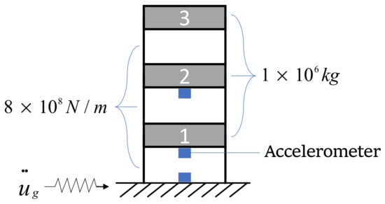 where ug denotes the ground motion and 1 is a vector in which elements are all equal to one. When the ground acceleration is monitored, the equivalent external load F is known as well. In this case, the dynamic equilibrium Equation (10) can provide an additional constraint. In other loading cases, the external force F is difficult to directly measure.