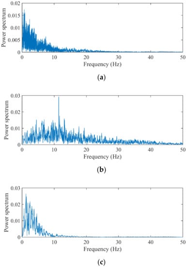 Eight earthquake waves were downloaded from the “Pacific earthquake engineering research center”, and their summary is detailed in Table 2. The sampling and computational frequencies were 100 Hz. The frame responses under the first six waves formed the training set. The testing set was the responses under the remaining two waves. The frequency ranges of all waves covered the numerical model’s natural frequencies. The training set (0.02–50 Hz) covered the 7th wave in the frequency spectrum but not the 8th. The spectrum power of the training set concentrated below 10 Hz (see Figure 8). Compared with the Kocaeli wave, the landers wave shared more similarities with the training set in the frequency spectrum. This small difference caused a minor variation in the algorithmic performance on the testing set.