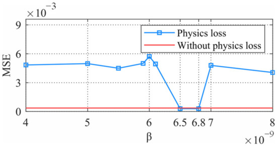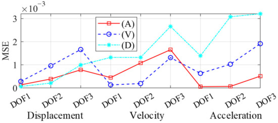 The physical loss was scaled by 2. The global FEM error is equivalent to changing the weighting factor . When the displacement, velocity, and acceleration responses are accurate, the physical loss Lp is approximate zero. Lp was still approximate zero after being scaled by 2. Therefore, the performance of the PINN was not seriously affected in this case. The MSEs with 20% global FEM error are shown in Figure 16, where the MSEs did not significantly increase.