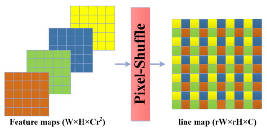 Pixel-shuffle: the pixels are mapped from the small-scale feature maps of size () to form super pixels in the large-scale line map of the size ().