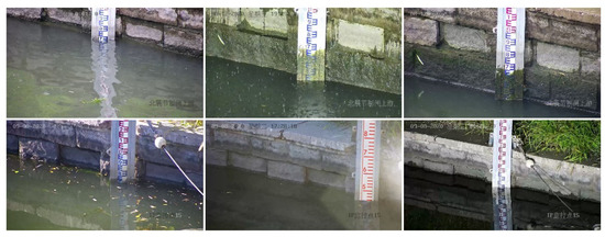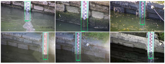 The water gauge image data are collected through two ways of Internet downloading and on-site shooting, totaling 5000 sheets. Among them, the web crawling method uses crawler technology to download images related to the water gauge to the local area, and screens out sample images with better quality through manual observation, although its resolution varies; on-site shooting mode uses video monitoring equipment to collect real business demand scene images of a hydrological monitoring sites in Beijing, capturing high-definition images of 1920 1080 pixels, where each video image contains a water gauge object. In order to make the collected samples more general and enable the network to fully learn and use these samples, the collected samples come from different scenes as much as possible. For example, the water gauge has problems such as different viewing angles, different lighting, and different weather. For issues such as viewing angle and illumination, the camera angle is adjusted multiple times when images are collected and the water gauge is taken at different time periods to enrich the network to obtain the representation characteristics. The actual field environment is relatively complex, with many scene factors, such as water surface wave, water surface reflection, transparent water body, backlighting, night fill light overexposure, dirty water gauge, and floating objects on the water surface, which bring huge challenges to object detection. Figure 2 shows part of the collected samples (In each sub-picture in the figure, the text in the upper left corner is the date the sample was collected, and the text in the lower right corner is the name of the video surveil-lance site).