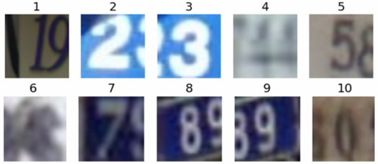 The SVHN is a Google Street View House Number dataset, which contains three subsets: a training set, test set, and validation set. Among them, the training set contains 73,257 digital images, the test set contains 26,032 digital images, and the validation set consists of 531,131 digital images. The dataset is divided into 10 categories, and each category represents a number. For example, the category label of the character “1” is 1, and so on, and the label of the character “0” in the dataset is 10. This paper uses Formate2 format data; the original image is normalized to a 32 32 color image. In practical application, there is almost no need for preprocessing and format conversion, which is convenient for research algorithms in machine learning and object recognition. Some images in the dataset are shown in Figure 3.