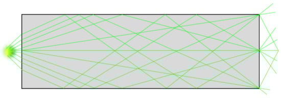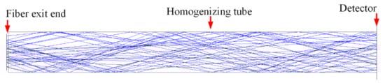 The homogenizing pipe is the most common form of the optical fiber waveguide method. Light propagates inside the homogenizing pipe based on the principle of total reflection of light. The inside wall of the homogenizing pipe is coated with a high-reflection film. When the incident light is introduced into the homogenizing pipe, it undergoes multiple total reflections inside the homogenizing tube. Finally, light beams exit at the other end of the homogenizing pipe to obtain a uniform light spot, of which the shape is consistent with the exit cross-section of the homogenizing pipe. Figure 2 shows the light propagation route in the homogenizing pipe.