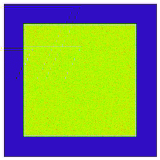 Since the divergence angle of the output beam of the fiber-coupled semiconductor laser was 22°, which satisfied Formula (3), the exit end of the fiber was directly coupled to the entrance end of the homogenizing pipe without adding a coupling lens. Figure 6 shows a schematic diagram of the direct coupling between the optical fiber and the homogenizing pipe, in which the aperture of the homogenizing pipe is square. Figure 7 shows the light spot at the exit end of the homogenizing pipe.