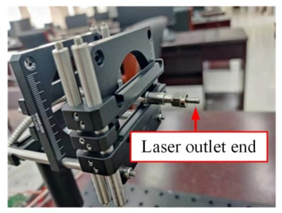 The power of the fiber-coupled laser was 500 W, in which the wavelength was 806 nm. The diameter of the outlet end face was 2 mm, and the initial divergence angle was 22°. Figure 9 shows the fiber-coupled semiconductor laser outlet end.
