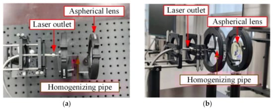 The homogenizing pipe was customized according to the parameters determined in Section 3. In order to analyze the attenuation of the laser beam by the homogenizing pipe, two homogenizing pipes with different lengths were customized in this experiment. Table 1 shows the parameters of the two homogenizing pipes.