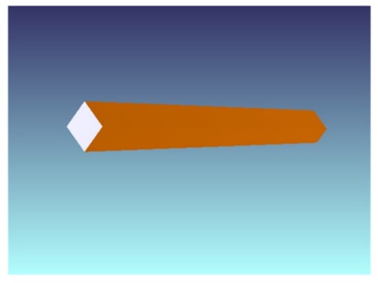 The illumination system was designed for the aforementioned fiber-coupled semiconductor laser, with a diameter of 2 mm and a divergence angle of 22°. The inlet end of the homogenizing pipe was 2 mm × 2 mm. Since the shape of the detector in the laser active imaging detection system was a rectangle with an aspect ratio of 4:3, when the far-field light spot was also a rectangle with a 4:3 rectangle, the energy utilization rate was the largest. Hence, the outlet end face of the homogenizing pipe was designed to be 1.6 mm × 1.2 mm, while the length was 20 mm. Figure 18 shows the shaded model layout of the homogenizing pipe.