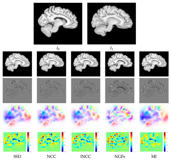 - Dalca, A.V.; Blakrishnan, G.; Guttag, J.; Sabuncu, M. Unsupervised learning for fast probabilistic diffeomorphic registration. In Proceedings of the 21th International Conference on Medical Image Computing and Computer Assisted Intervention (MICCAI’18), Granada, Spain, 16–20 September 2018; pp. 729–738. [Google Scholar]