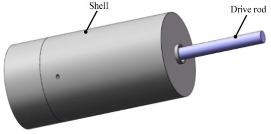 Due to there being many parts used in the proposed actuator, some parts need to be fixed, and a nested combination is also required between parts. To facilitate the design requirements, the actuator is designed as a barrel-shaped packaging structure, as shown in Figure 1. The actuator is composed of an electromagnetic part and a piezoelectric part. The electromagnetic part drives the drive rod to rotate, and the piezoelectric part provides the expansion and contraction of the rod to realize the demand of two-DOF drive.