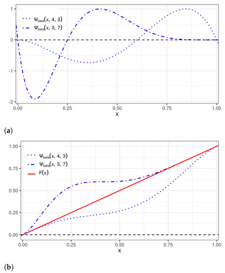 Plots of the beta wavelet perturbations: (a) ; and (b) .