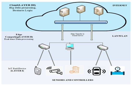 There is no one defined architecture that is generally accepted by the IoT community. Different architectures are designed based on the use case, the technology used, and the size of the IoT network. In smart health use cases, refs. [22,23,24,25] proposed a smart architecture to monitor and track patients’ health records and transmit physiological parameters to control centers where the advance interpretation of the data is performed. Wang et al. [26] proposed a novel IoT access architecture based on field-programmable gate array (FPGA) and system on chip (SoC), which provides a unified approach to the IoT for a wide assortment of low-speed and high-speed devices with associated extendibility and configurability [27]. In technology and communication, Shang et al. [28] analyzed the security and challenges in implementing TCP/IP technology for IoT systems architectures. In [29,30,31], the authors also created different routing protocol for IoT communication. These architectures can be implemented in Autonomous Systems of Things (ASoT) and legacy Autonomous Systems (ASs). Different configuration techniques were applied for IoT routing architectures. Notwithstanding, different architectures have been implemented for assorted use scenarios such as in [32], where the authors proposed an IoT-based architecture for sport (football). Their aims were to embed sensing devices (e.g., sensors and RFID), telecommunication technologies (e.g., ZigBee) and cloud computing with the mission to monitor the health of footballers and eradicate the occurrence of diverse health problems in football. In all the above-mentioned architectures, they have different use-cases; therefore, the sensitivity of data in each scenario differs. Creating security for each system requires special knowledge in the field of application. However, the IoT-MEC architecture follows the level such as Sensor Level (IoT end-device), MEC/Fog Layer, and the Cloud. Detailed the structure of the IoT devices, MEC, and the cloud is shown in Section 3.