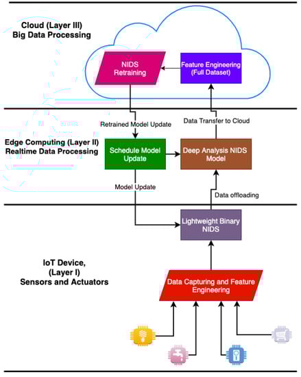The IoT security problems are similar to the early genealogy of computers in the mid-1990s [59] when the unreliability of personal computers (PC) security required emergency attention. Many computer networks were vulnerable to threats, and there were no direct approaches to fix them. Organizations kept vulnerabilities as a mystery and did not discharge security overhauls rapidly. Moreover, it was hard, if not incomprehensible, to motivate clients to introduce new security systems. In recent years, this has changed because of a mix of full divulgence distributed vulnerabilities to organizations’ constraints. The skills of attackers, the developing technologies, and the enormous growth of Internet traffic have made it difficult for any existing NIDS to offer a reliable service to the IoT system. However, a close examination of the IoT system’s cyberattack shows that there usually exists a behavioral pattern in the attacks [60], which can be learned when ML and MEC are combined to design NIDS more effectively.