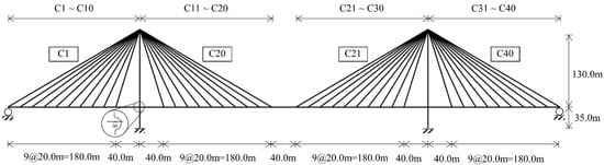 The construction of bridges with longer spans is a challenging task in civil engineering. A cable-stayed bridge is widely adopted to construct long-span bridges, in which the cable connects the bridge deck and the pylon to support the bridge deck. The forces generated in cables can be divided into horizontal and vertical components. The horizontal component of the cable force causes a significant compressive force on the girder, and the girder has a complex distribution of bending moment owing to the vertical component of the cable force. In addition, horizontal and vertical components of the cable force cause a bending moment and compressive force on the pylon, respectively. The brokenness of one cable can affect the entire equilibrium system of the structure. Therefore, ensuring the integrity of cable-stayed bridges is a significant factor in structural maintenance. Various responses and environmental conditions have been measured using a monitoring system to evaluate the integrity of cable-stayed bridges [1,2,3].