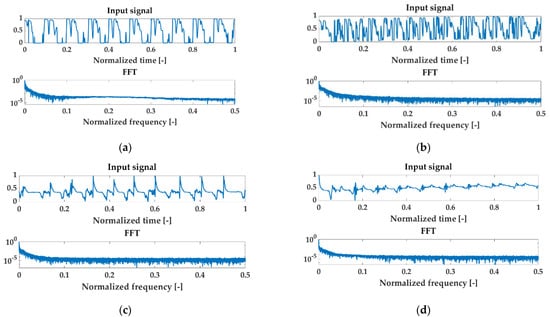 The number of signal indices (parameters) used in vibroacoustic diagnostics is very large. The selection of the signal measures used in this paper was based on a literature analysis [90,91,92,93,94] and the previous experience of the authors presented in papers [51,52,95].