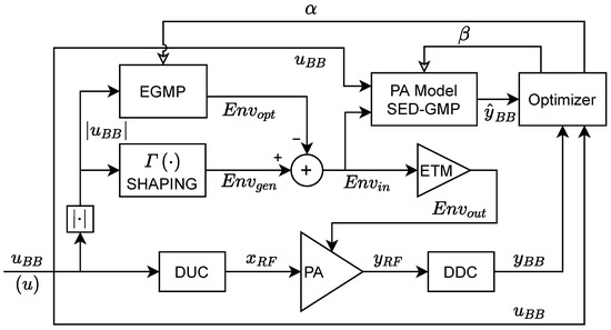 In the following subsections, the linearity versus efficiency trade-off in the shaping function responsible for the generation of the supply envelope is first introduced. Then, for the sake of completeness, the EGMP model proposed in [19] and the direct learning approach to extract the EGMP coefficients, assuming that ETM output is available, is presented. Next, to generate the optimized supply envelope without having access to the ETM output, a slow envelope-dependent (SED) PA behavioral model is used, and an exploration scheme is proposed to help the PA model converge to a global optimal. Finally, the procedure to extract the coefficients of the EGMP model through the SED PA behavioral model is explained. It is important to note that the proposed EOPT method is agnostic on the ETM behavior (i.e., the access to the ETM output is not required) and, thus, it only requires monitoring the RF PA output and a precise ET PA behavioral model to extract the coefficients of the EGMP model.