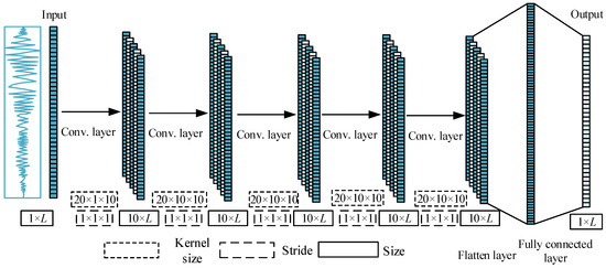 A 1-D CNN model is used to predict the seismic response of the building. The architecture of the proposed CNN model is described in Figure 2. The input is the earthquake acceleration, while the output is the displacement or the acceleration response. There are five hidden convolutional layers and one fully connected layer between input and output layers. For the convolutional layer, rectified linear unit (ReLU) is used as the activation function.