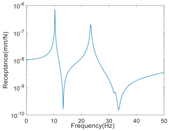 The dynamic equation can be transformed into the equation in the frequency domain by substituting and into Equation (6). Thus, it can be expressed as: