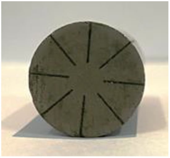 The structure of a high-power Tonpilz Terfenol-D transducer is mainly composed of a head mass, a drive section, a tail mass, and a stress rod with a metallic bolt to fasten all the components. A 1 kHz Tonpilz giant magnetostrictive transducer was designed and manufactured. A structural diagram of the transducer is shown in Figure 1. This transducer uses high-strain Terfenol-D as the driving material, and the driving section consists of four Terfenol-D rods with a diameter of 20 mm and a length of 100 mm. A samarium–cobalt permanent magnet with a thickness of 15 mm and a diameter of 20 mm is pasted on both ends of each Terfenol-D rod to provide a bias magnetic field of around 45 kA/m. The stress rod passing through the center of the assembly provides a prestress of 20 MPa for the rods by the disc springs. To reduce the eddy current, the Terfenol-D rod is radially slotted, and the schematic diagram of the Terfenol-D rod is shown in Figure 2. In order to provide AC excitation to the rods, 1300 turns of AC drive wound wire electric solenoid are wound on each rod.