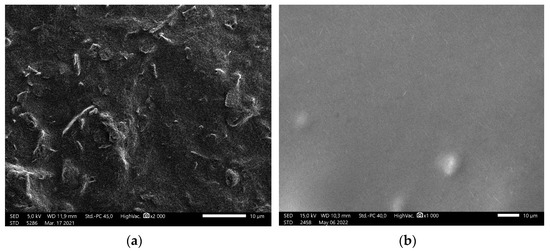 SEM images of sensor surface: (a) graphene modified; (b) PVC membrane.