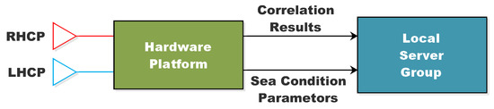 Environmental data collecting that is efficient and accurate is critical for operations including maritime production, resource preservation, disaster monitoring, and marine warfare. Traditional sea condition monitoring methods include buoys [1], current meters [2], and survey vessels [3,4]. However, the detection range is limited, and only point or line sea surface information can be collected, and the operating method is severely limited by maritime weather circumstances. Microwave remote sensors such as scatterometers [5], altimeters [6], and synthetic aperture radars [7] use a single-base technique for active detection, which allows for a wide measurement range but comes at a high cost, limiting their utility. As an emerging remote sensing technology, Global Navigation Satellite System-Reflectometry (GNSS-R), which was originally introduced by Martin-Neira [8] for ocean mesoscale altimetry, has been greatly extended to a wide range of applications. GNSS-R signals are used to retrieve the parameters of the Earth from the reflection surface, such as sea surface height [9,10,11,12], wind speed [13], sea ice [14,15,16], significant wave height [17], vegetation [18], soil moisture [19], target detection [20], and snow [21]. Classified from the receiver placement position, it can be divided into spaceborne [22], airborne [23], shipborne [24], shore-based [25]. Because GNSS-R technology makes full use of existing navigation satellite signal resources, and does not require the construction of transmitting equipment, the measurement device’s size, power consumption, and cost are considerably decreased. With the ever-improving GNSS system, a vast number of on-orbit navigation satellites ensures a huge number of accessible signal sources, making large-scale, low-cost, high-spatial-resolution surface detection possible. At the same time, the L-band employed by the GNSS system is less attenuated in the cloud and rain layer than the Ku, X, C, and other bands used in traditional remote sensing, making wind and wave remote sensing possible even in extreme weather such as typhoons [26]. The GNSS-R technology corrects the flaws in traditional remote sensing technologies and has significant research value. Because the reflected signals differ from the signal directly received from the satellite in terms of delay, Doppler shift, power strength, and polarization, they can be used to characterize the Earth’s surface [27,28,29,30,31,32]. These differences are dependent on the scattering surface’s geophysical qualities, and so may contain information about the surface geophysics. This paper investigates the conditions of the oceans and proposes a real-time system to retrieve sea parameters.